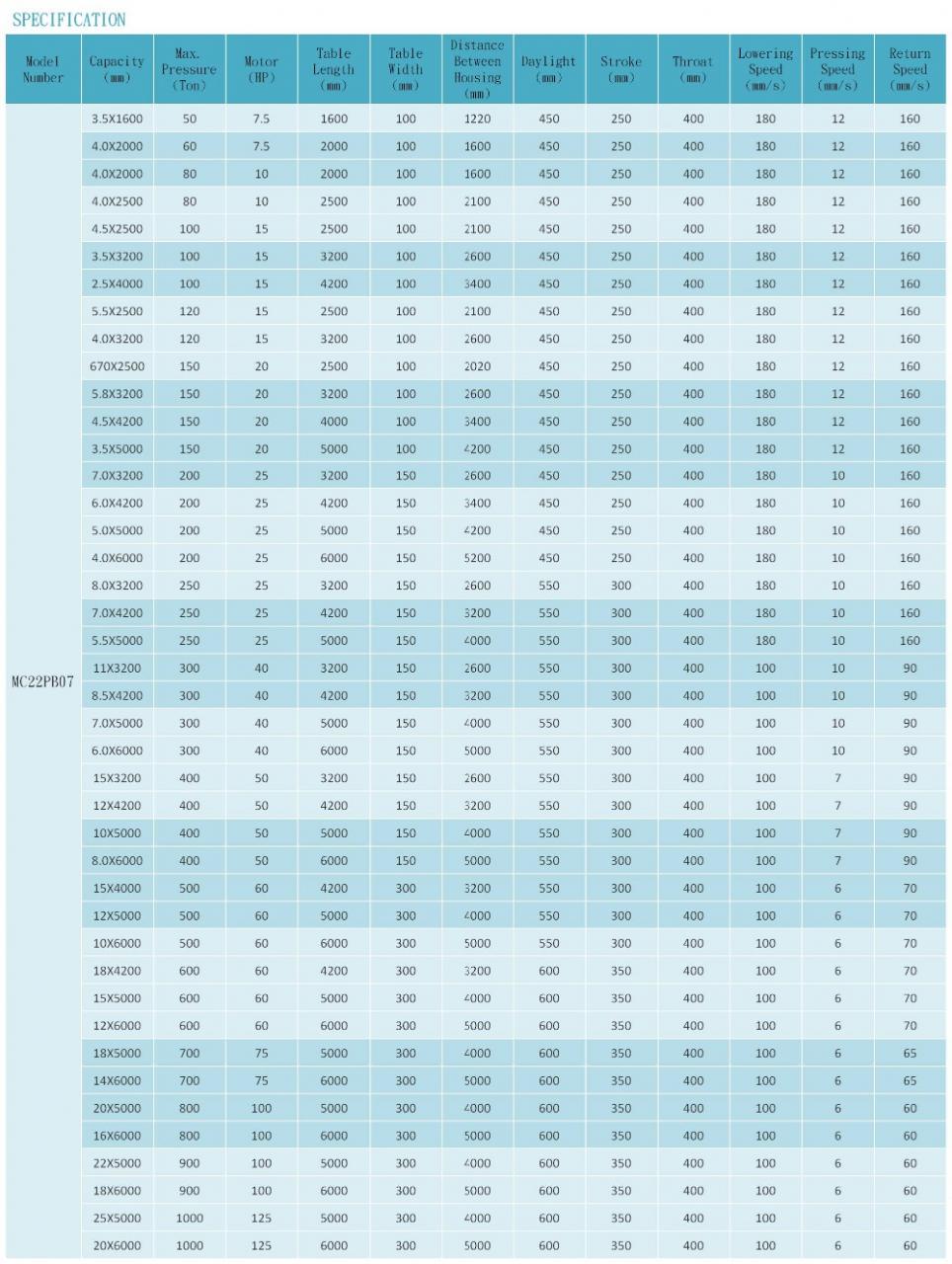 | מספר פריט | MC22PB07 | כּוֹחַ | הידראולי |