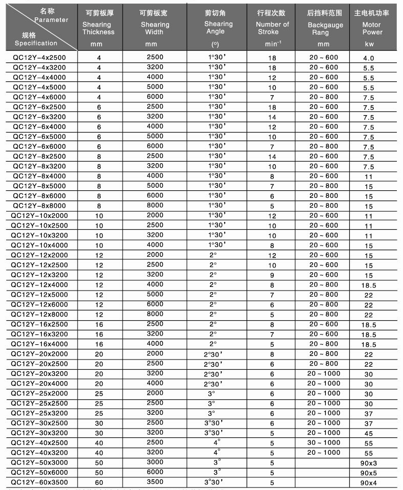 - זווית גזירה: 30°~1°30, 30°~1°45, 30°~2°, 30°~2°30, 1°30~3°, 1°30~3°30, 1°30~4 °